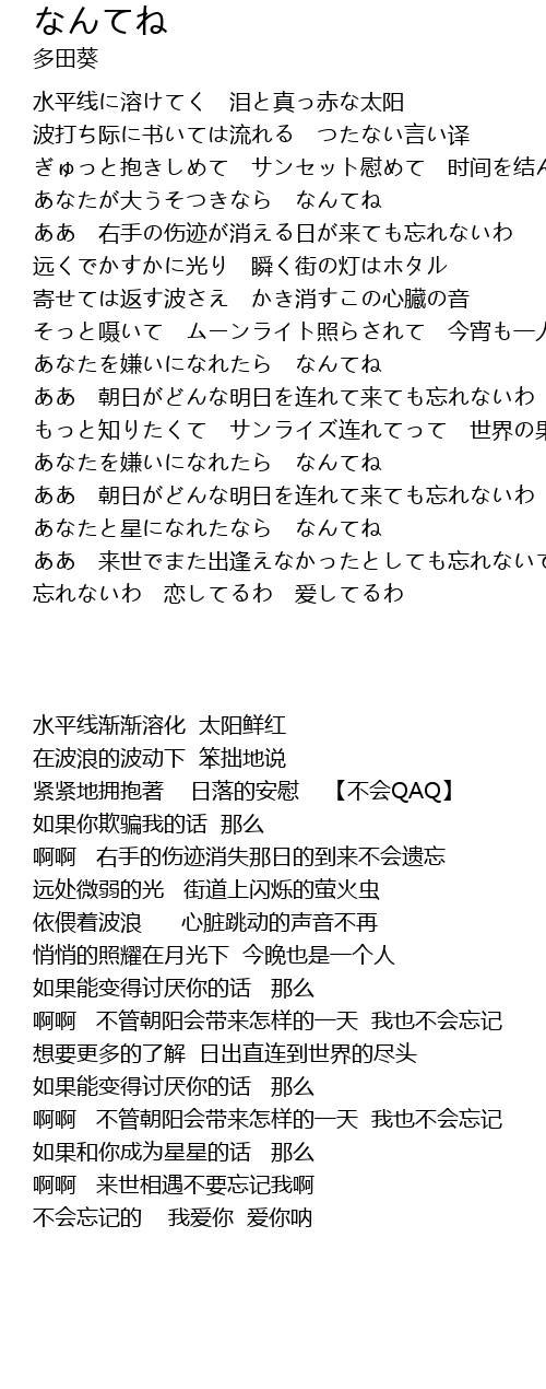 | [00:38.180] | 紧紧地拥抱著 日落的安慰 【不会QAQ】 |