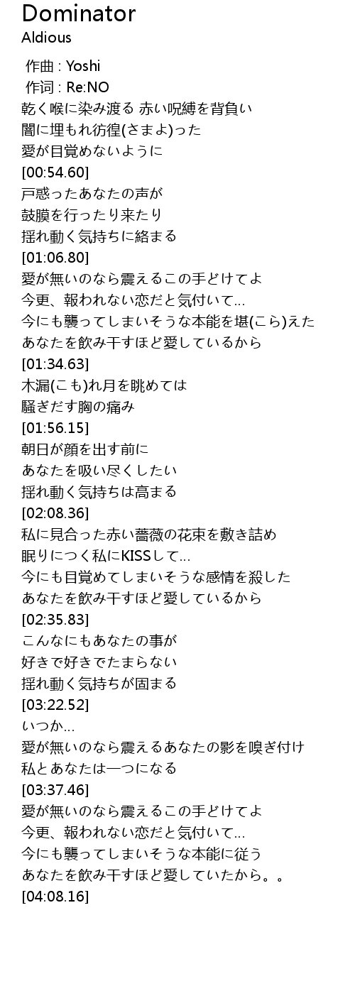 | [03:25.93] | 愛が無いのなら震えるあなたの影を嗅ぎ付け |