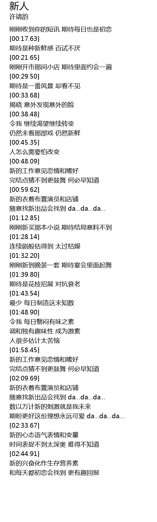 | [00:18.63] | 期待是种新鲜感 百试不厌 |
