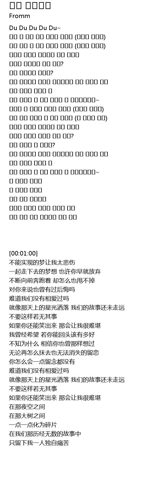 | [00:28:00] | 계속 함께 갈 꿈이 너에겐 없었지 (너에겐 없었지) |