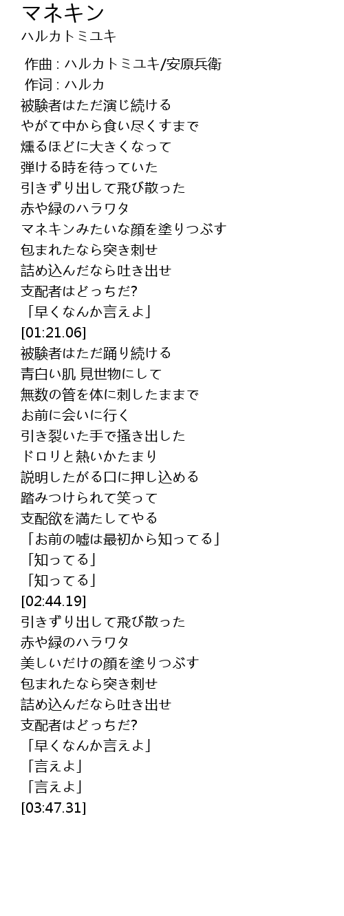 [00:00.00] 作曲 : ハルカトミユキ/安原兵衛