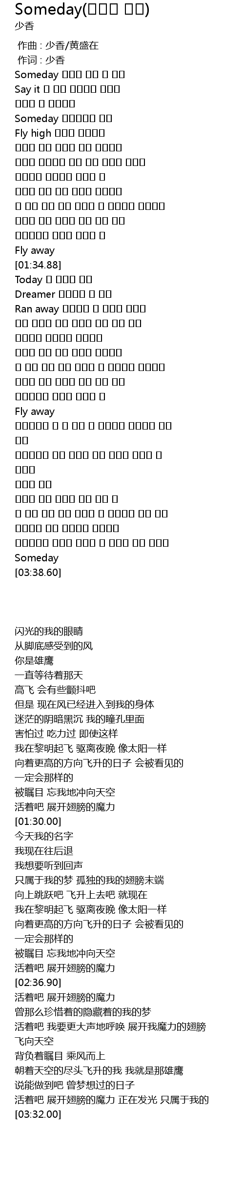 | [00:15.64] | Someday 빛나고 있는 내 눈이 |