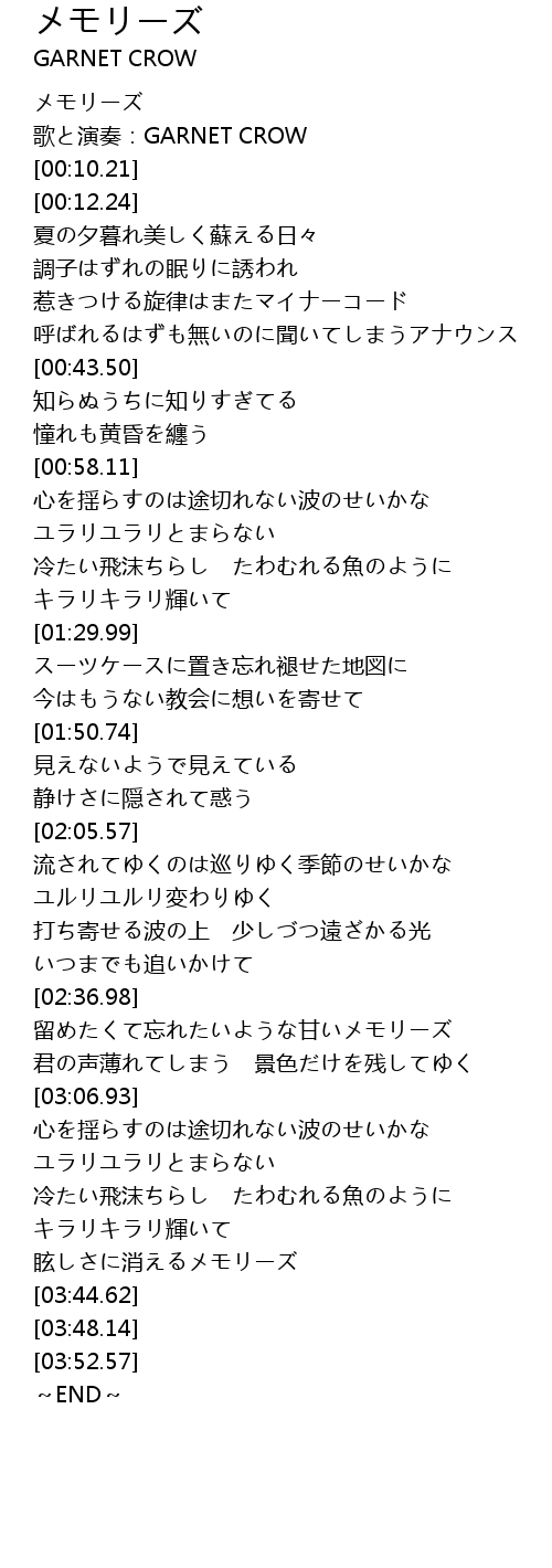 | [03:37.15] | 眩しさに消えるメモリーズ |