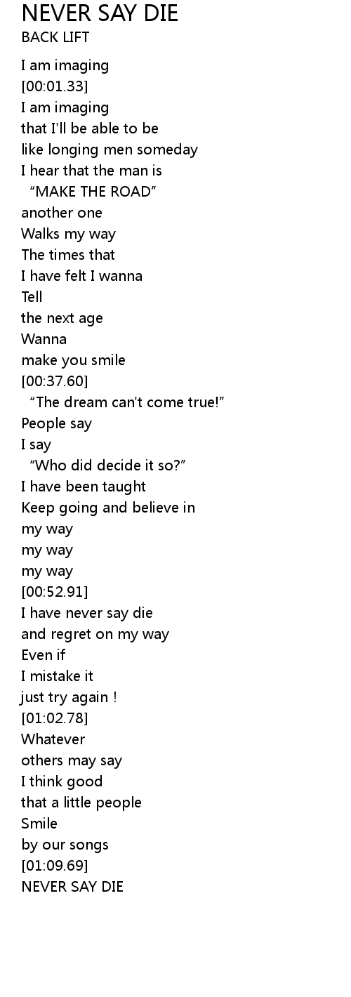 | [01:09.79] | NEVER SAY DIE |