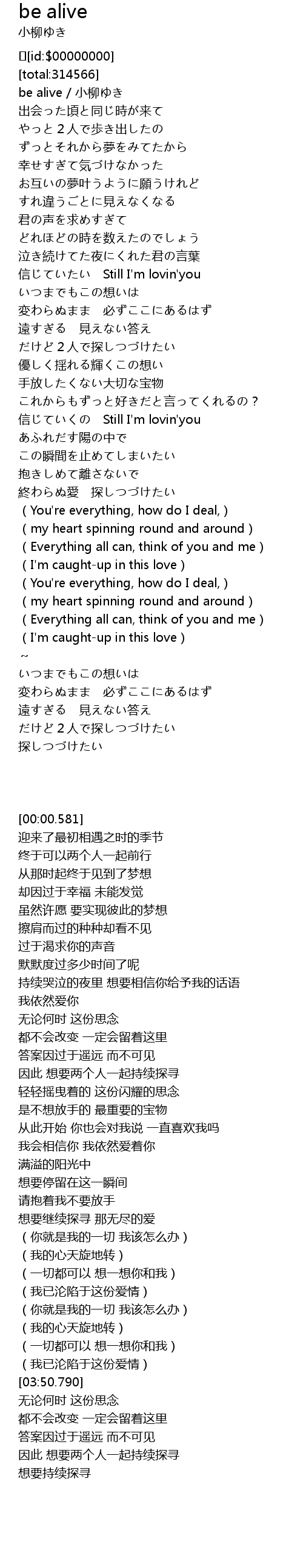 | [00:00.581] | be alive / 小柳ゆき |