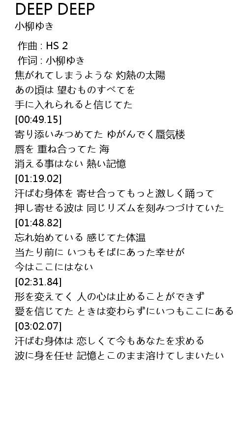 | [03:03.57] | 汗ばむ身体は 恋しくて今もあなたを求める |