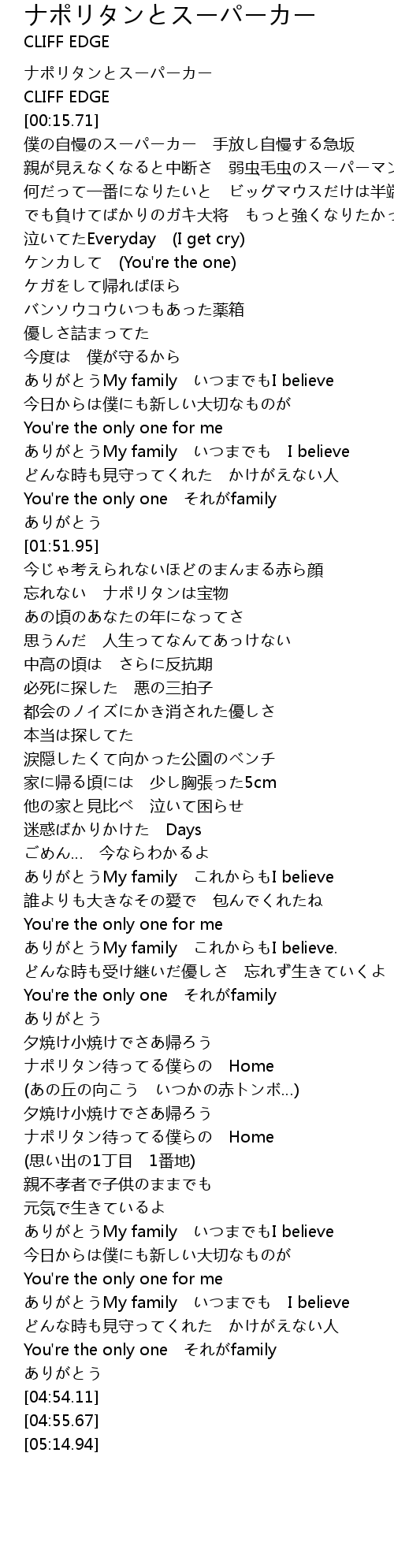 | [01:23.91] | ありがとうMy family いつまでも I believe |