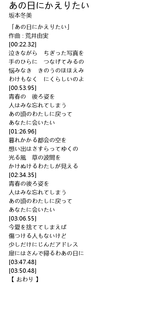| [00:01.32] | 「あの日にかえりたい」 |
