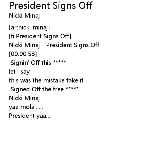 | [00:00.00] | Nicki Minaj - President Signs Off |