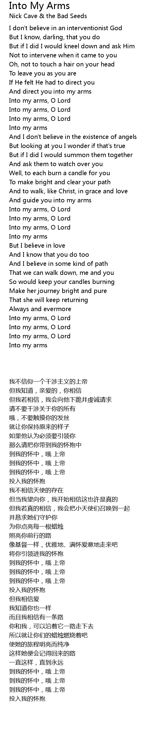 Into my arms, O Lord |