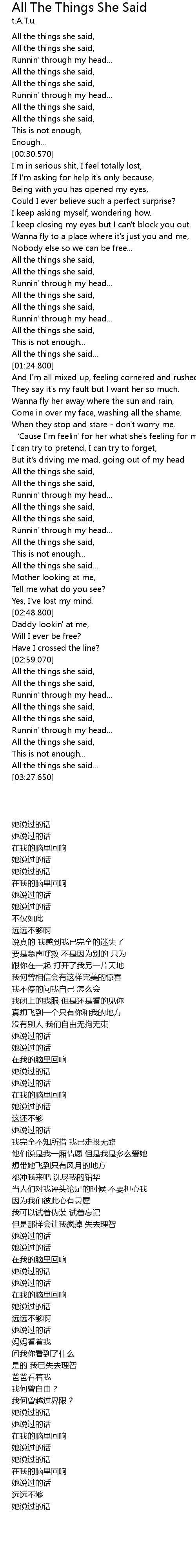 | 歌曲 | All The Things She Said |