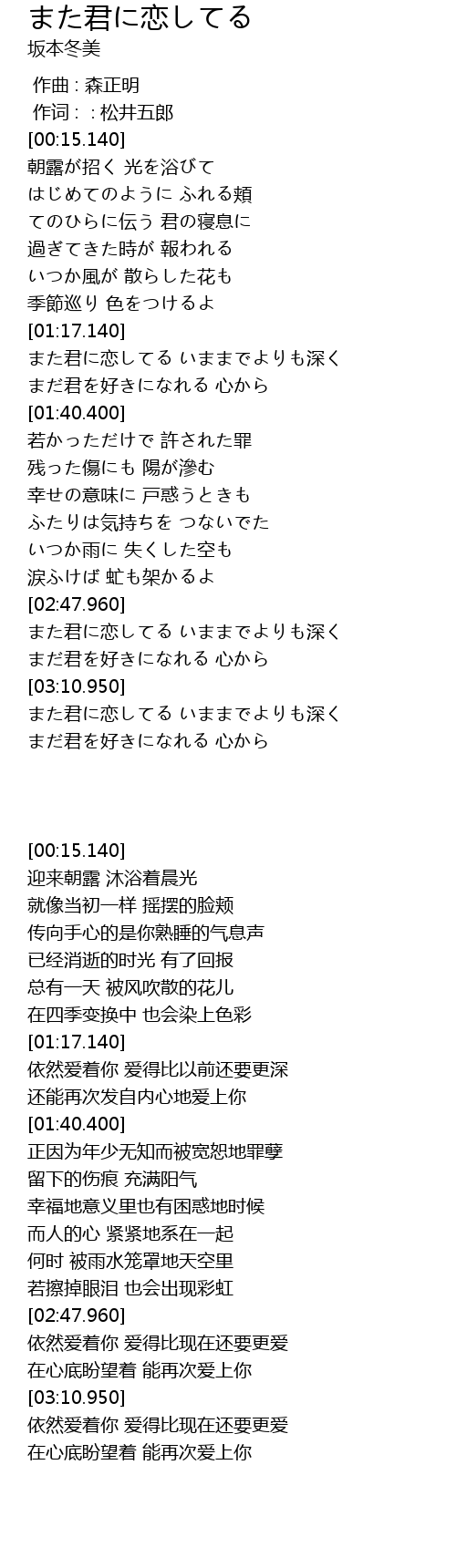 | [02:59.490] | まだ君を好きになれる 心から |