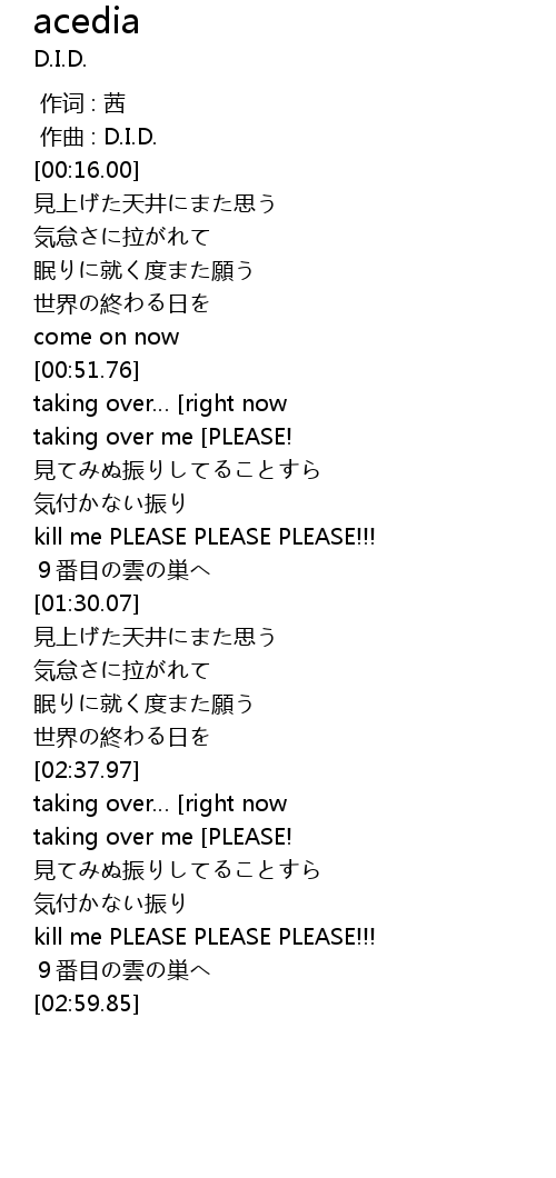 | [00:01.000] | zuo qu : D. I. D. |