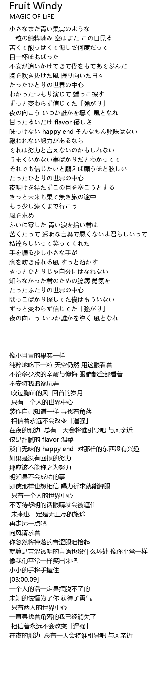 | 歌曲 | Fruit Windy |