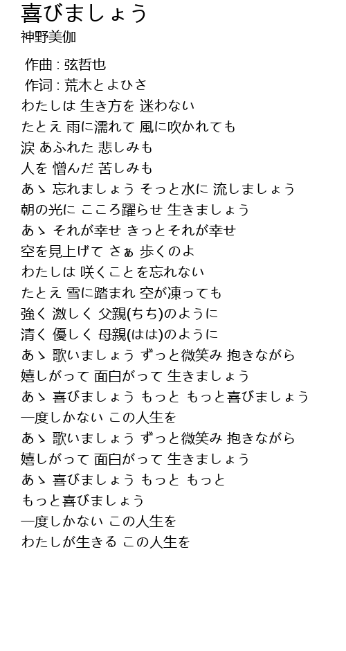 | [03:42.74] | あゝ 喜びましょう もっと もっと喜びましょう |