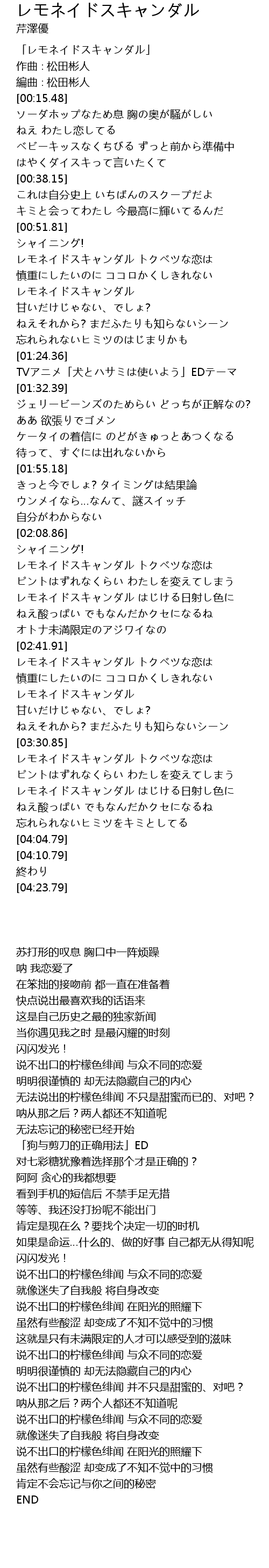 | [00:00.18] | 「レモネイドスキャンダル」 |