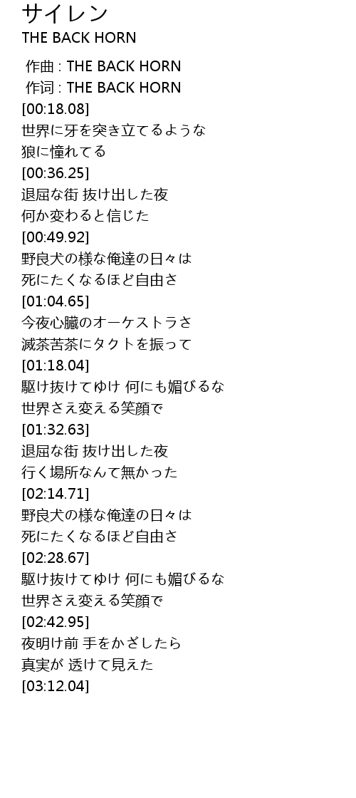| [00:01.00] | 作词 : THE BACK HORN |