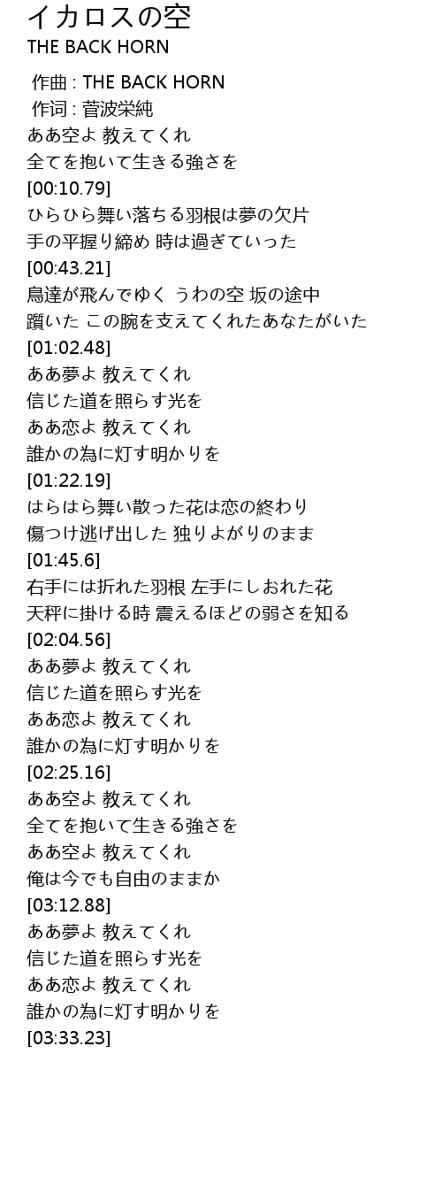 | [00:00.00] | 作曲 : THE BACK HORN |