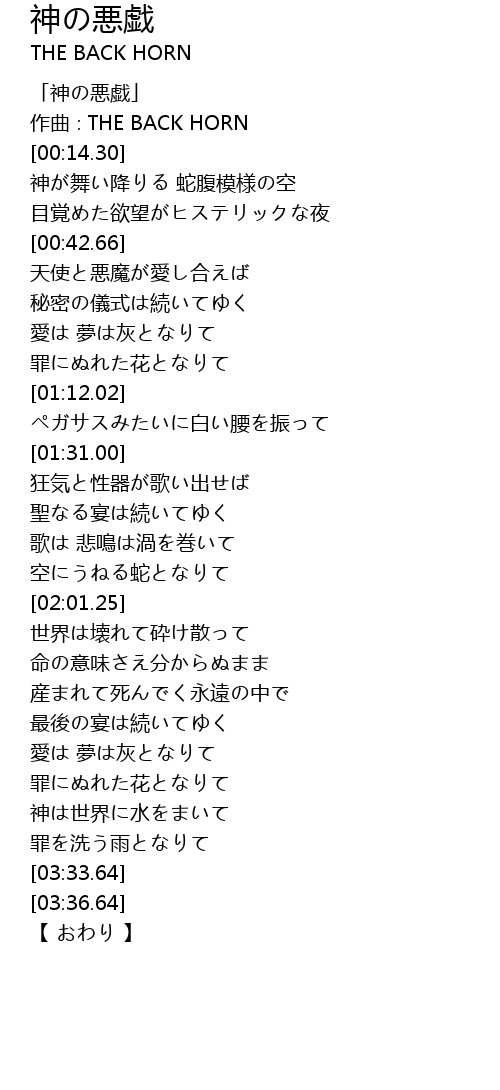 | [00:07.30] | 作曲∶THE BACK HORN |