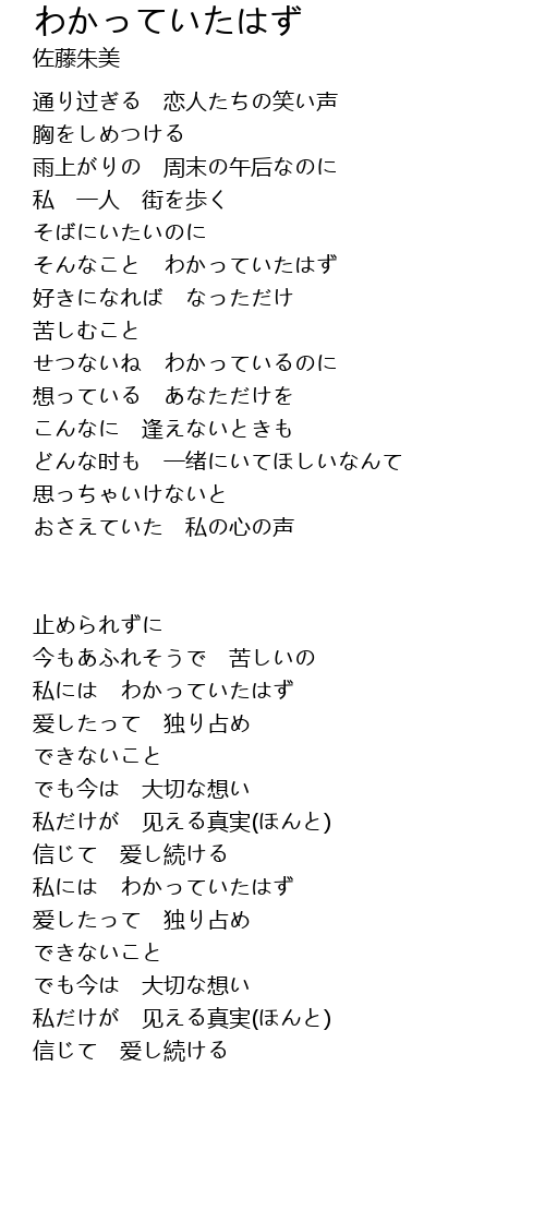 | 歌曲 | わかっていたはず |