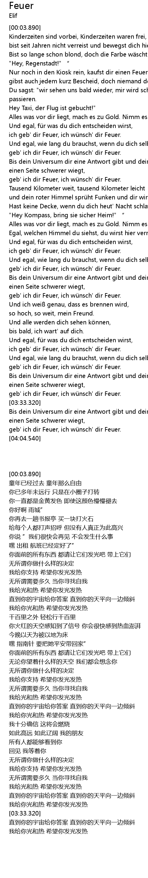 | [03:56.210] | geb' ich dir Feuer, ich wü nsch' dir Feuer. |