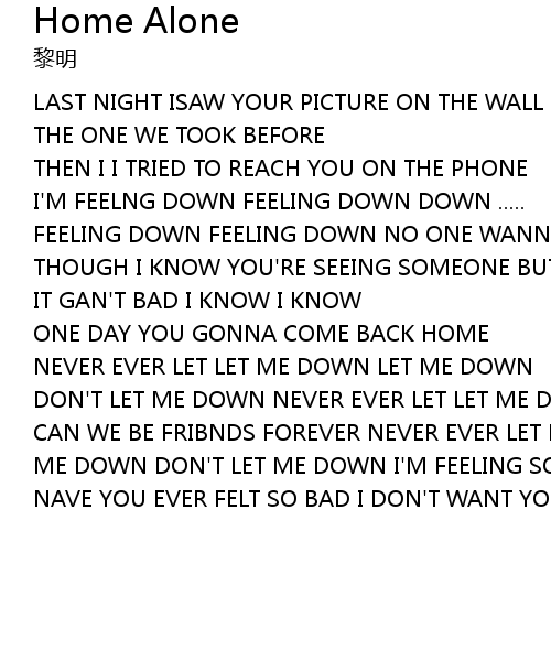 | [01:10.09] | ME DOWN DON'T LET ME DOWN I'M FEELING SO BAD |