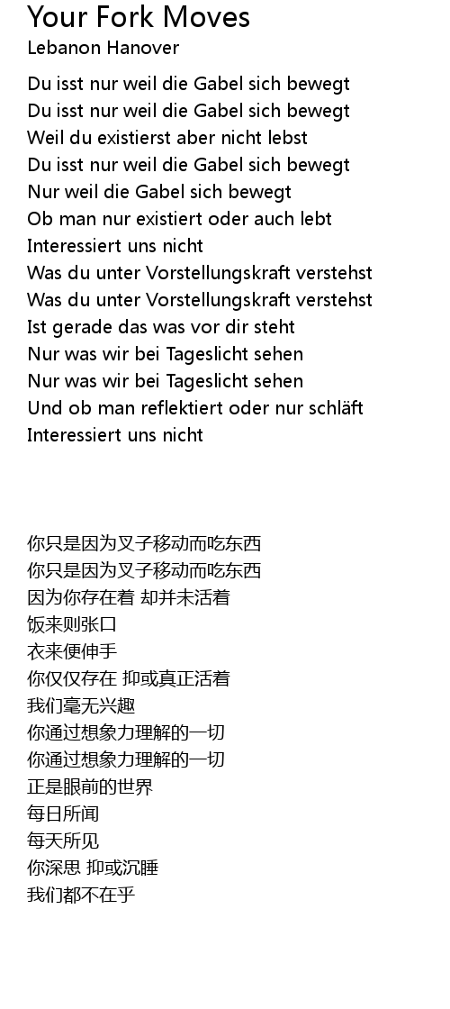| [00:42.94] | Du isst nur weil die Gabel sich bewegt |