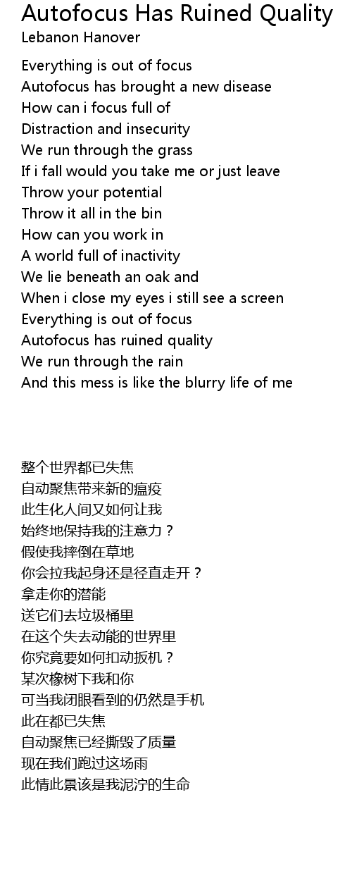 And this mess is like the blurry life of me |