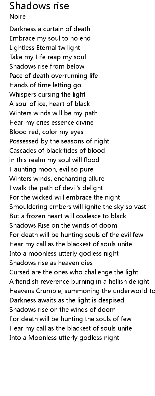 Shadows rise as heaven dies |