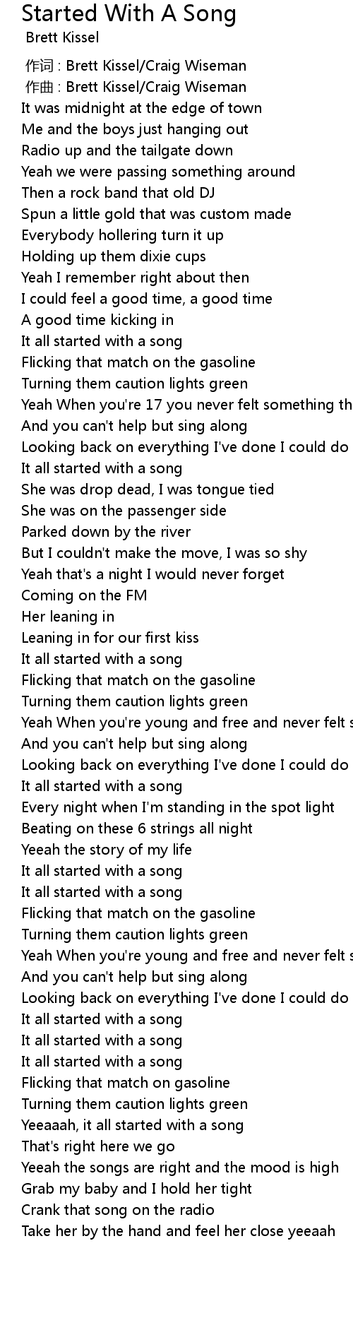 | 歌曲 | Started With A Song |