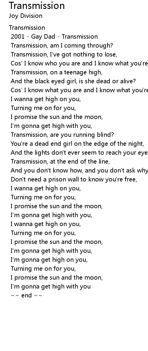 Transmission, on a teenage high, |