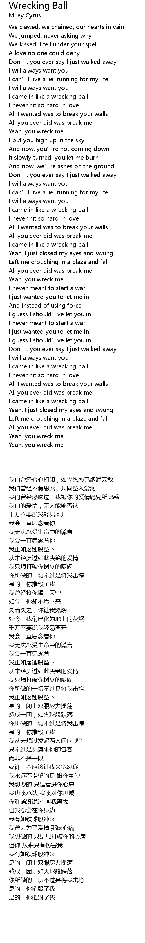 | 歌曲 | Wrecking Ball |