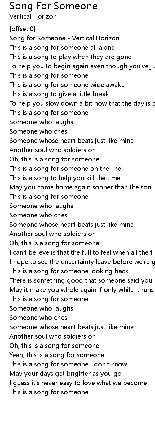 [00:00.86] Song for Someone - Vertical Horizon
