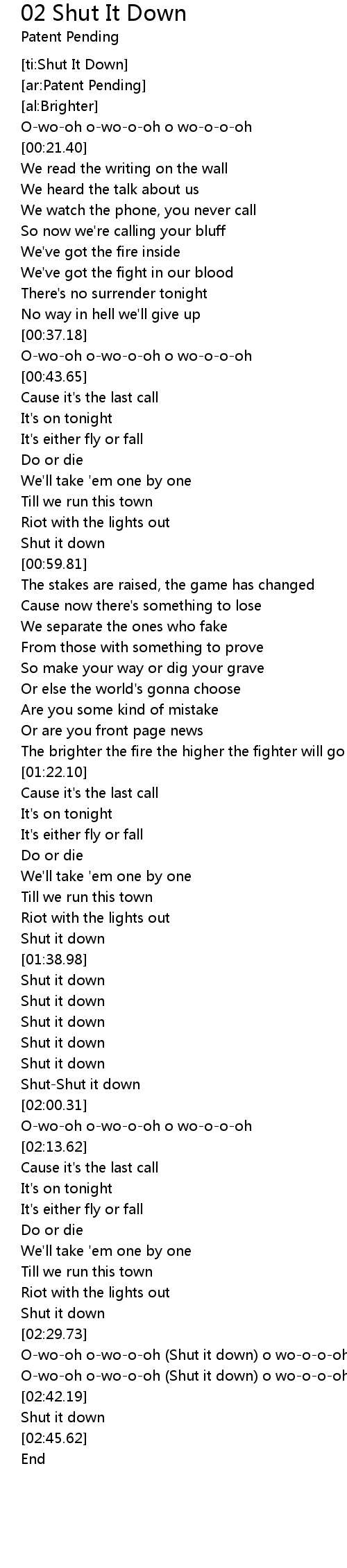 [ti:Shut It Down] |