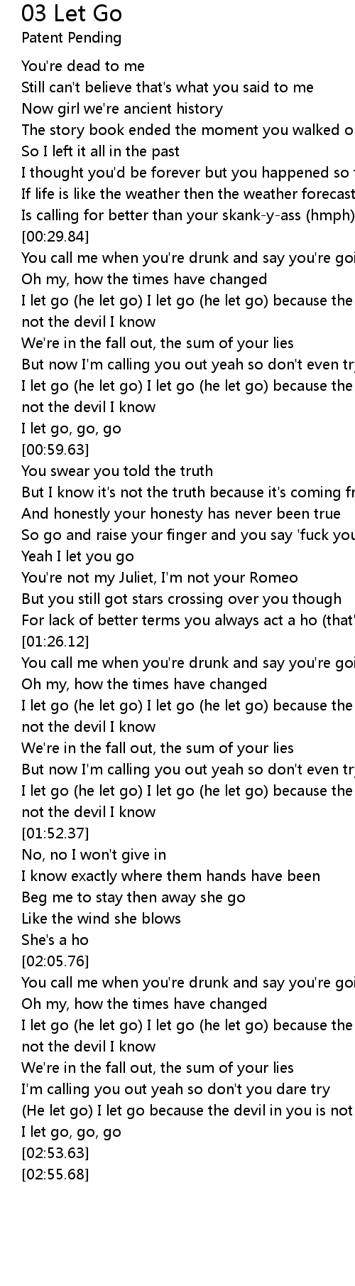 I let go (he let go) I let go (he let go) because the devil in you is not the devil I know |