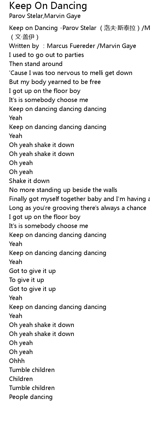 | [00:00.00] | Keep on Dancing Parov Stelar luò fū sī tài lā Marvin Gaye wén gài yī |