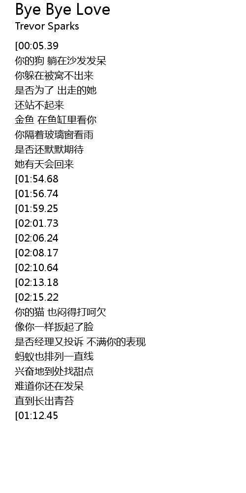| [01:30.38] | 你的猫 也闷得打呵欠 |