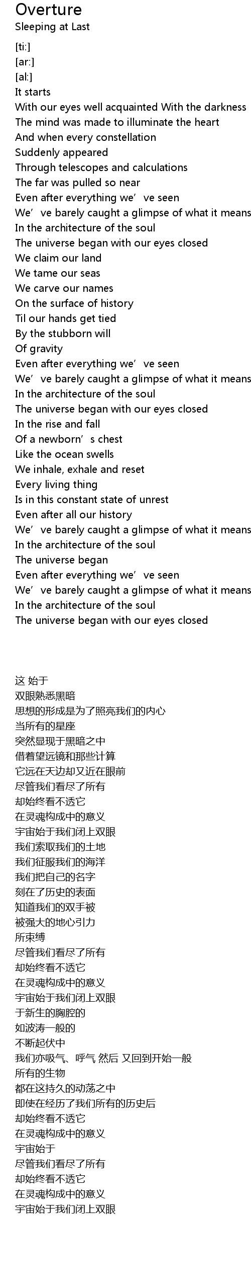| [03:17.89] | 宇宙始于我们闭上双眼 |
