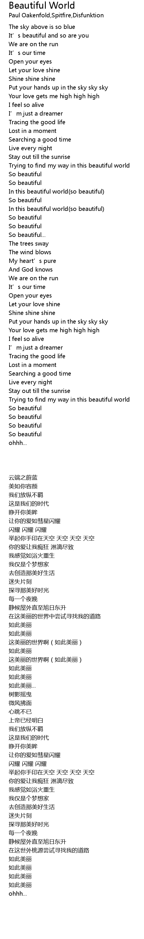 | [01:13.58] | In this beautiful world(so beautiful) |