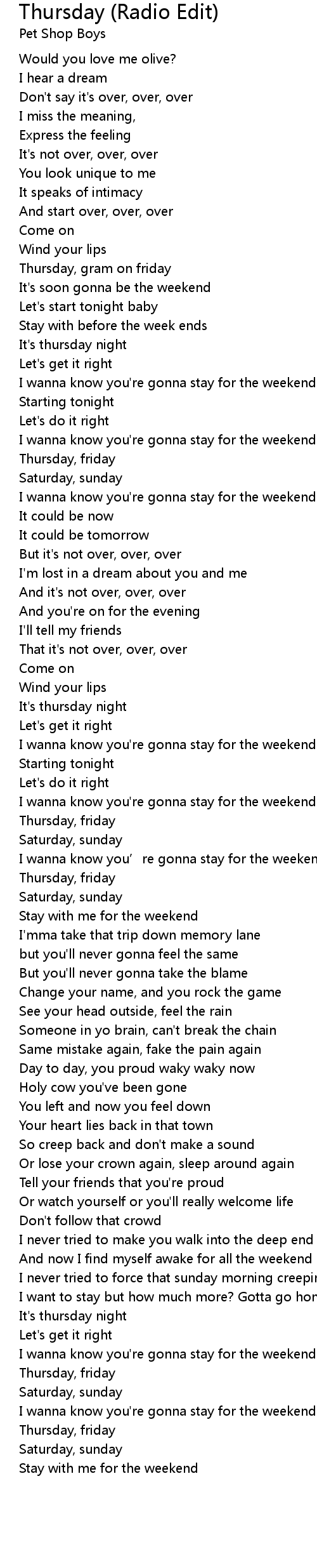 | [02:33.10] | Thursday, friday |