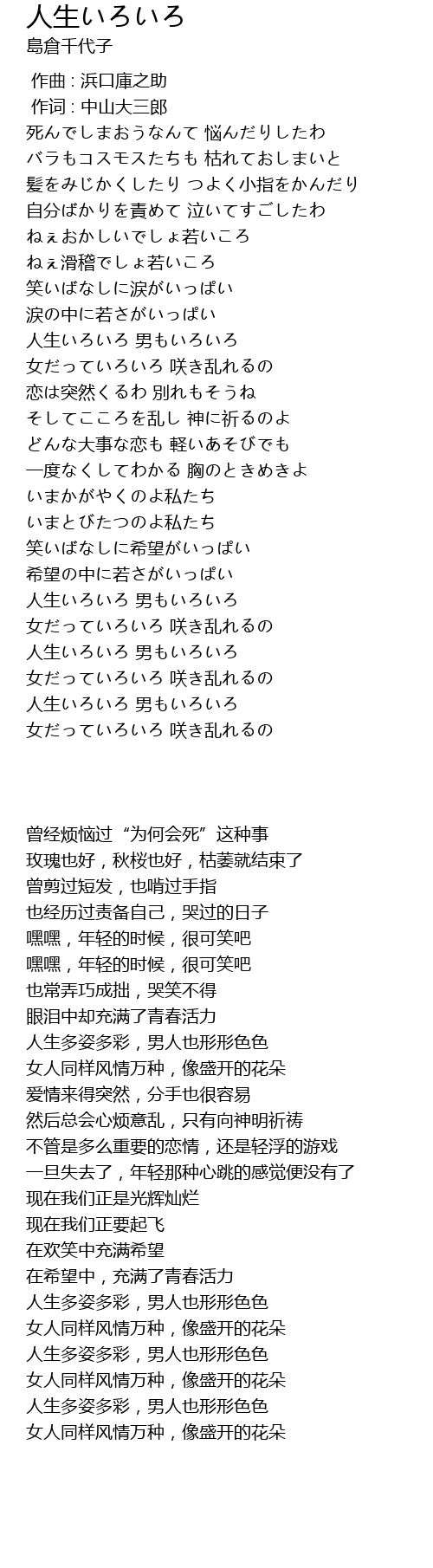 | [02:40.93] | 人生いろいろ 男もいろいろ |