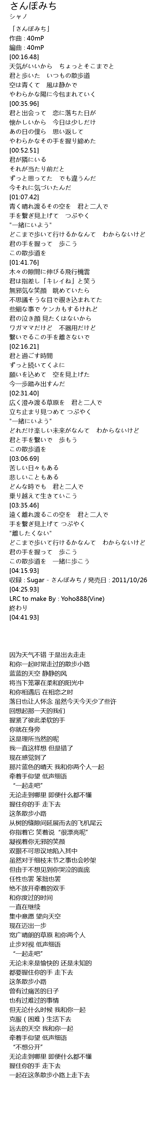 | [04:20.93] | 収録∶Sugar - さんぽみち/発売日∶2011/10/26 |