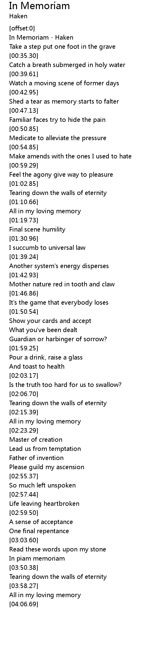 In Memoriam 歌词