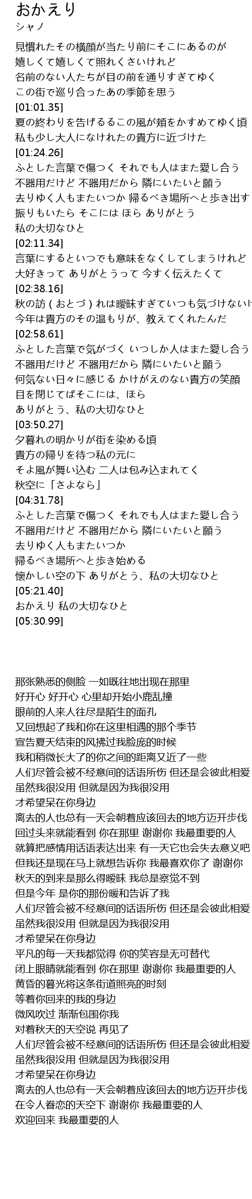 | [05:21.88] | おかえり 私の大切なひと |