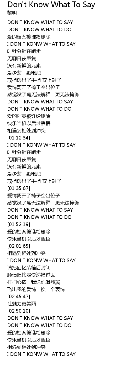 | [01:49.32] | DON'T KNOW WHAT TO SAY |