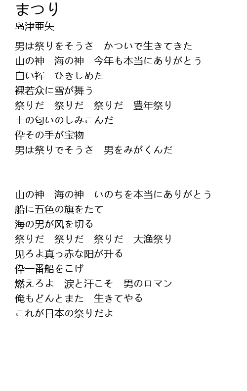 | 祭りだ 祭りだ 祭りだ 豊年祭り | |
