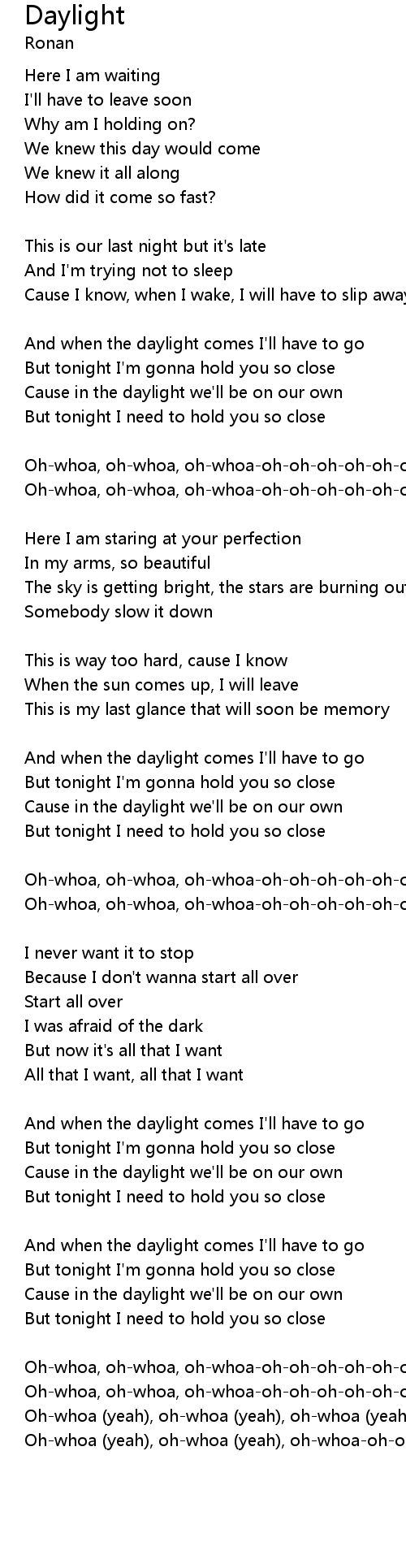 And when the daylight comes I'll have to go |
