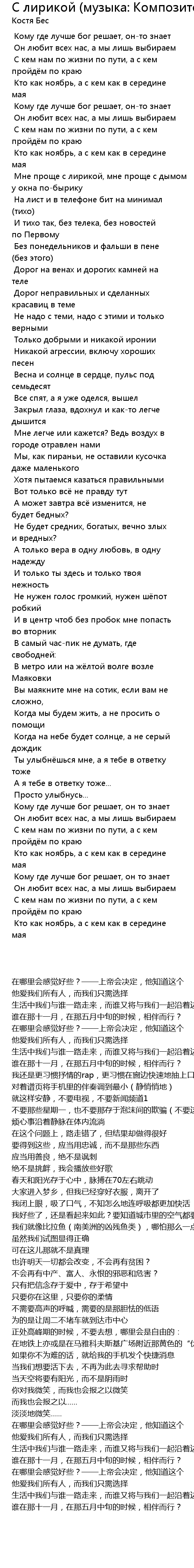 | [00:17.494] | С кем нам по жизни по пути, а с кем пройдём по краю |