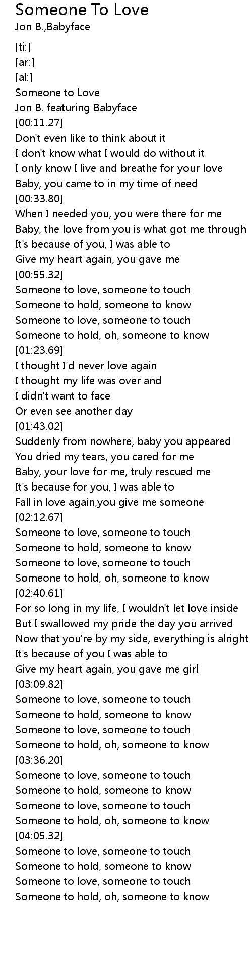 | [04:26.12] | Someone to hold, oh, someone to know |