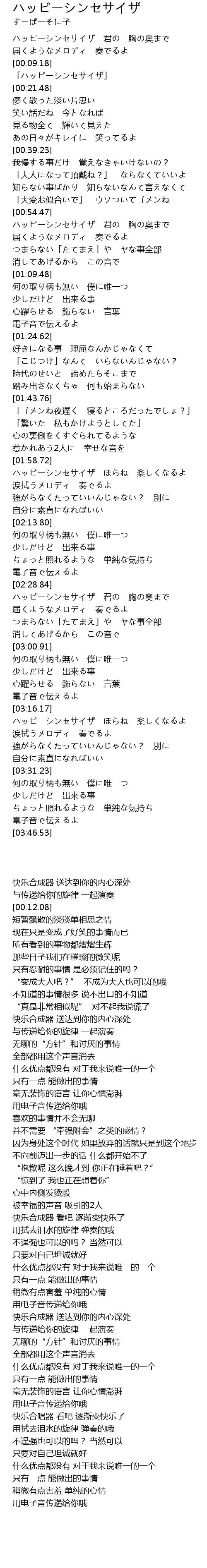 | [00:12.08] | 「ハッピーシンセサイザ」 |